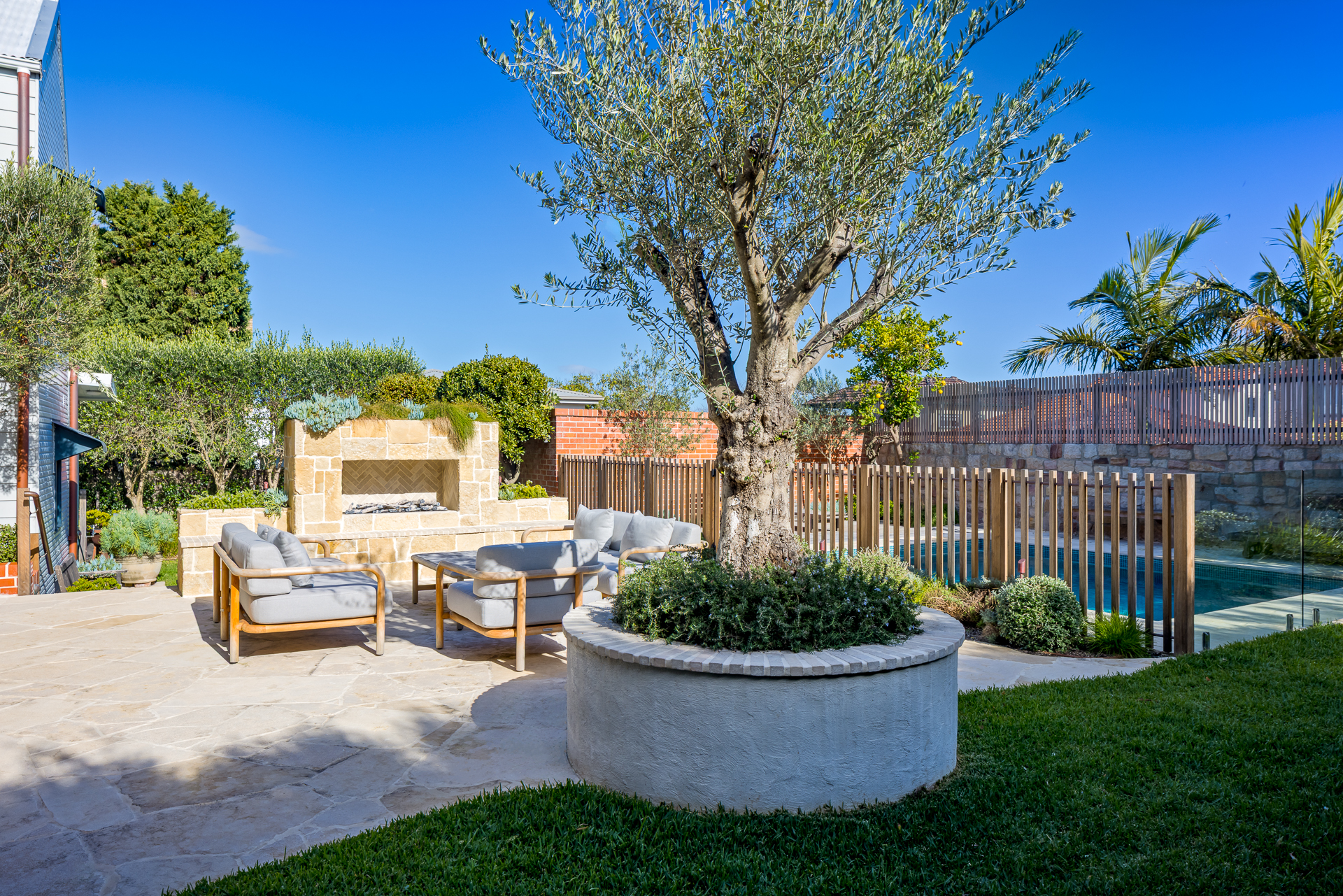Transforming the outdoor spaces of this exceptional home in Randwick required considerable town planning and project management knowledge. The landscape design relocated the existing pool to allow for a large entertaining terrace that included a stone fireplace, seating within a Mediterranean plant palette, natural stone and timber finishes, as well as enhanced transitions to all areas of this wonderfully spacious garden.